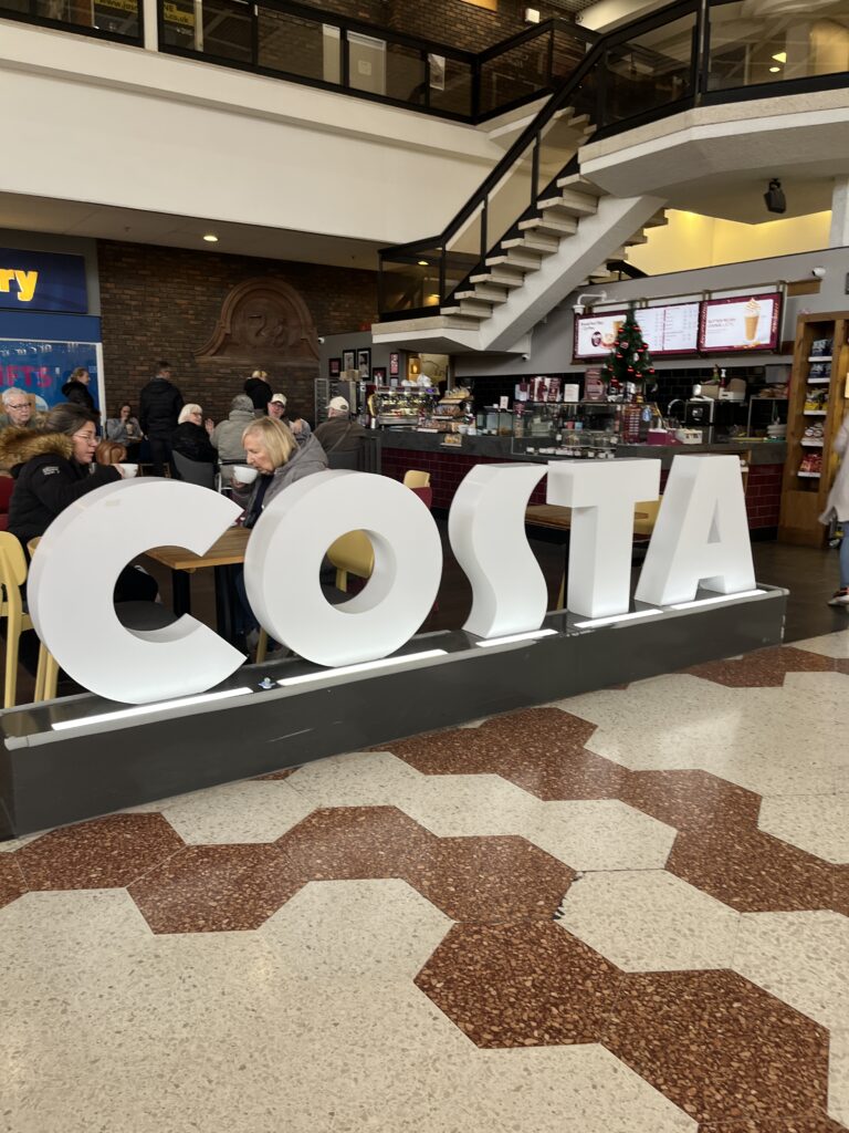 The best way to escape the rain is to step into the warmth of a cafe. Start your morning at Costa Coffee or Greggs. There’s nothing quite like watching the rain hit the glass from the comfort of a padded chair with a steaming latte and a fresh pastry.